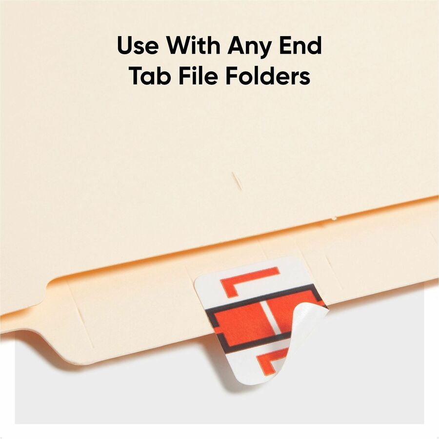 | Marketing Information | Unlike ACCS style labels, these bar-style alphabetical labels are for end-tab folders only. Color-coding labels are tab products compatible. Self-adhesive makes them easy to use. Label measures 1-1/4" wide x 1" high (before folding). |